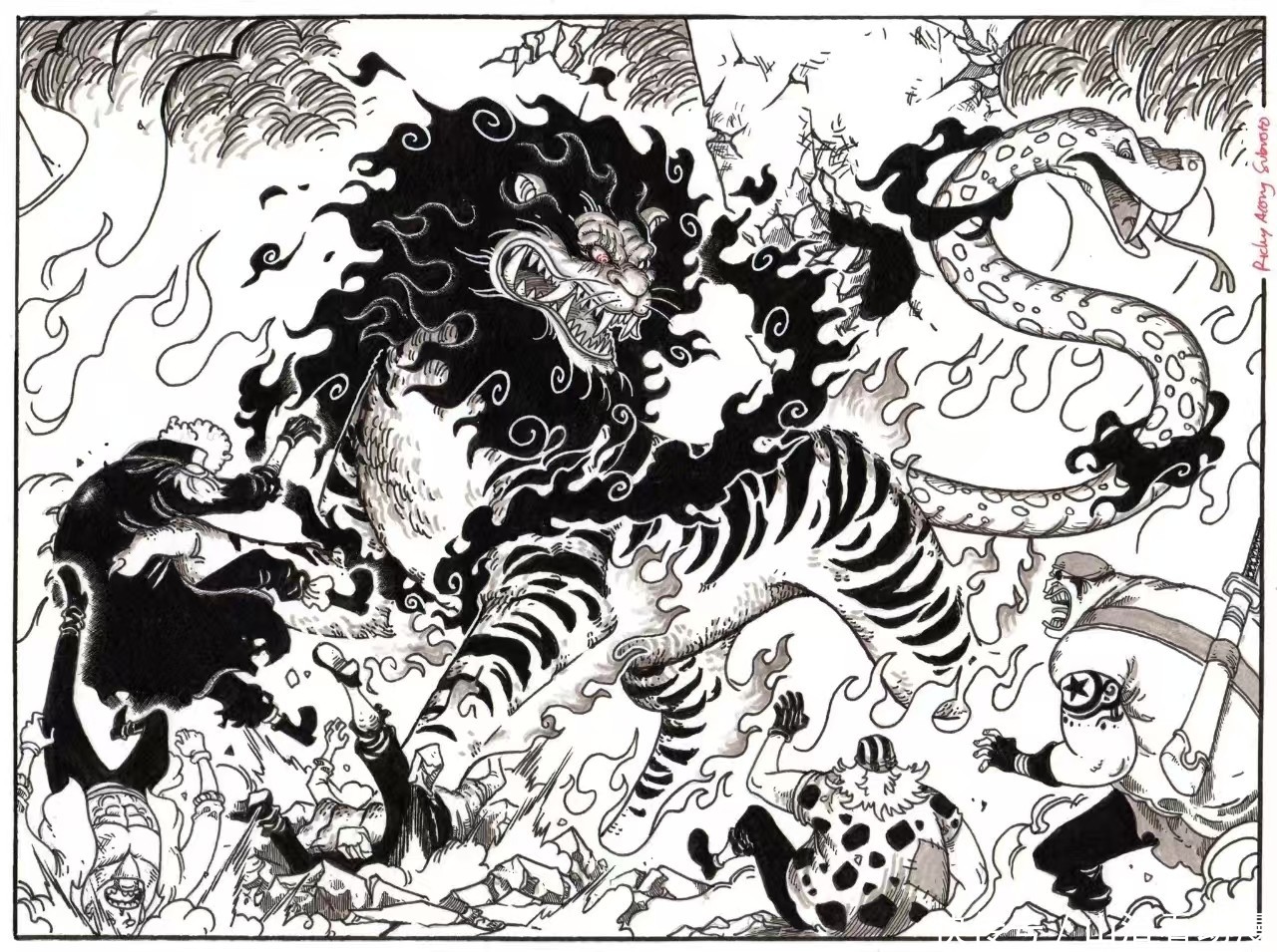 洛基王子去吃巨东说念主族听说中的恶魔果实,红发香克斯和贾巴也出来禁绝哈拉尔德国王,他们给洛基王子争取时辰。洛基王子最终吃下恶魔果实,他形成了黑龙景象,一招秒杀了哈拉尔德国王,城堡大战鸿沟了。