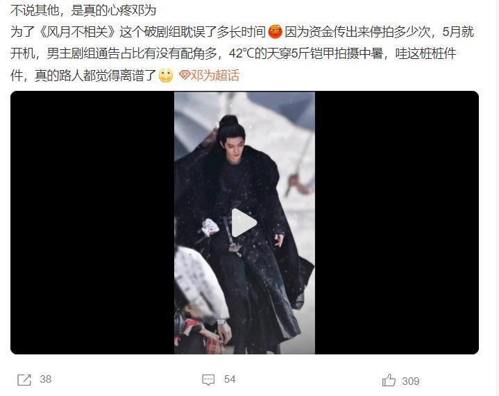 这部剧播出后,邓为的热度快速高潮,然后他驱动接男主剧,先拍摄《仙台有树》,然后又进组《风月不关系》,但让群众没意想的是,《风月不关系》的确停拍了,这让好多网友都感到可惜,要知谈《风月不关系》刚开拍就自带怜惜度。