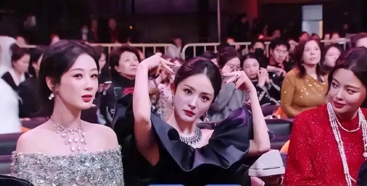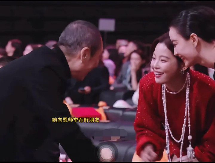 致使在和前排的恩师张艺谋打呼叫时。
