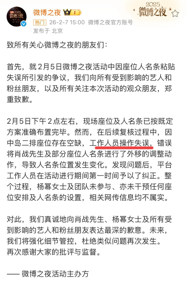 主持方微博之夜,之后亦然接连发布几条声明修起此事。