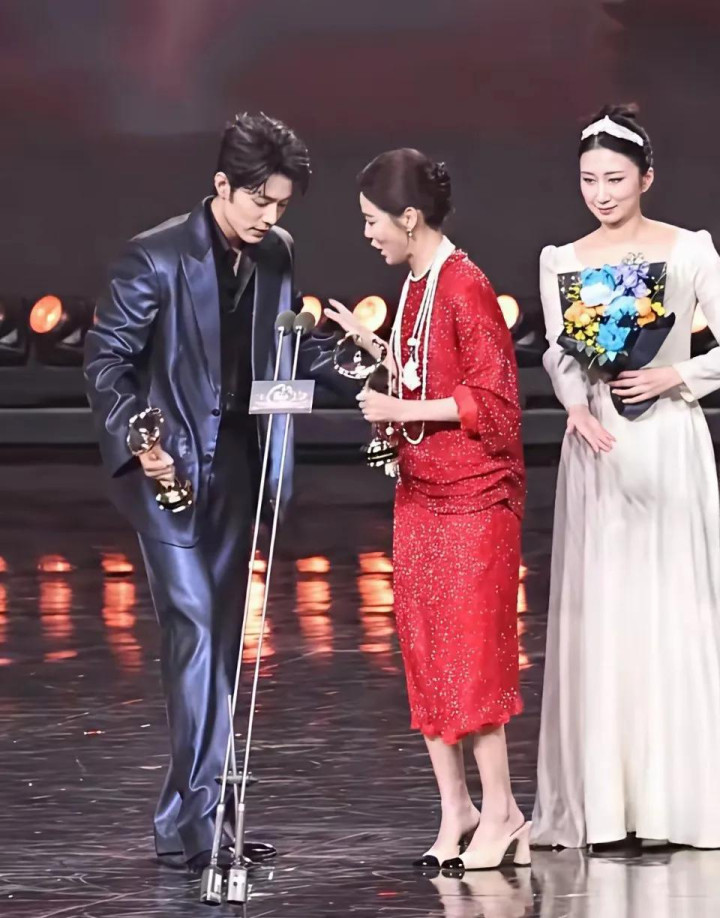 肖战和辛芷蕾这两位“抢座受害者”上台领奖时,还一直在辞谢C位。